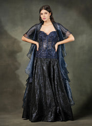Corset Top - Net, Skirt - Textured Jacquard, Stole - Organza |